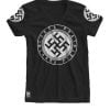 Front is large 27cm-10,5″ diameter print, back 26cm-10″ length Slava Rodu logo with 8cm-3″ circle print on both sleeves.