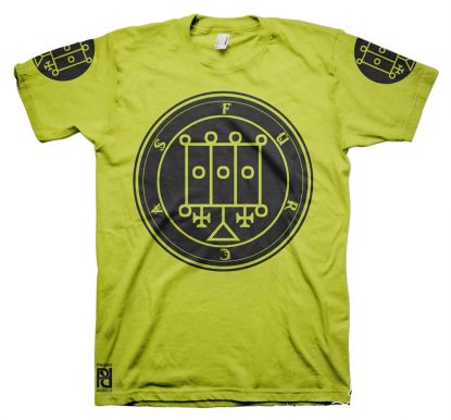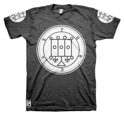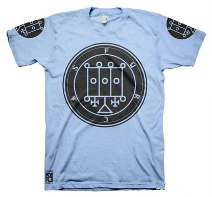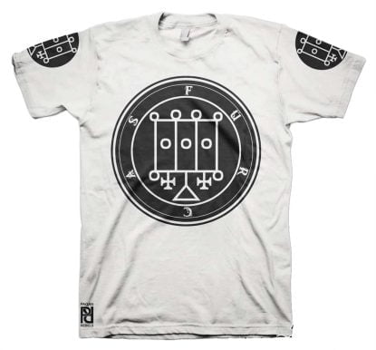Front is large 30cm-12″ diameter print, back 30cm-12″ length Ars Goetia logo with 10cm-4″ circle print on both sleeves.