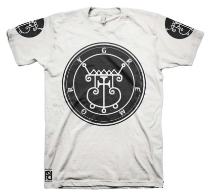 Front is large 30cm-12″ diameter print, back 30cm-12″ length Ars Goetia logo with 10cm-4″ circle print on both sleeves.