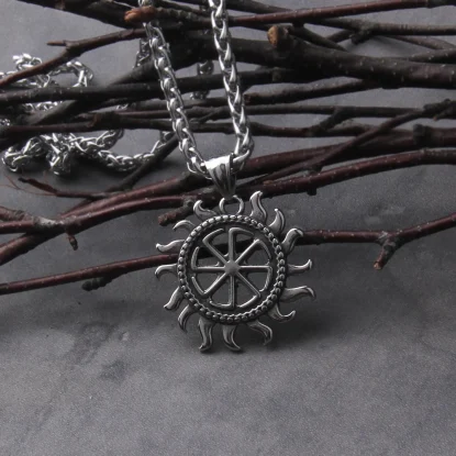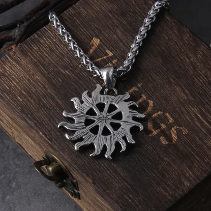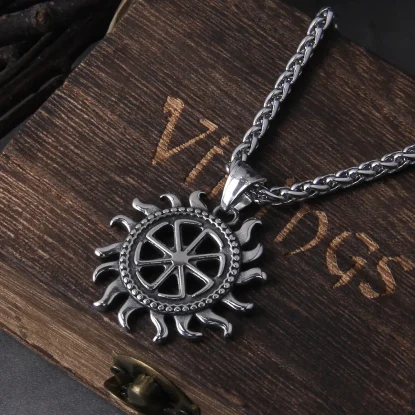 Name:Viking Valknut Pendant Men’s Necklace Round Pagan Religious Man Slavic fashion Women Steampunk Jewelry Tibetan Necklace Amulet with wooden box as gift