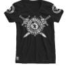 Front is large 32cm-12,5″ diameter print, back 26cm-10″ length valhalla logo with 8cm-3″ circle print on both sleeves.