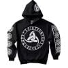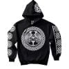 Front is large 30cm-12″ diameter print, back 30cm-12″ length Ragnarok logo with print on both sleeves and on hood.