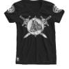 Front is large 32cm-12,5″ diameter print, back 26cm-10″ length valhalla logo with 8cm-3″ circle print on both sleeves.