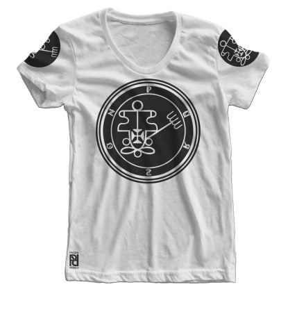 Front is large 27cm-10,5″ diameter print, back 26cm-10″ length Ars Goetia logo with 8cm-3″ circle print on both sleeves.