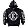 Front is large 32cm-12,5″ diameter print, back 32cm-12,5″ length Valkyrie logo with print on both sleeves and on hood.