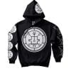 Front is large 30cm-12″ diameter print, back 30cm-12″ length Ars Goetia logo with print on both sleeves and on hood.