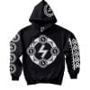 Front is large 32cm-12,5″ diameter print, back 32cm-12,5″ length Valkyrie logo with print on both sleeves and on hood.