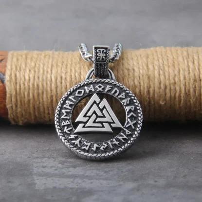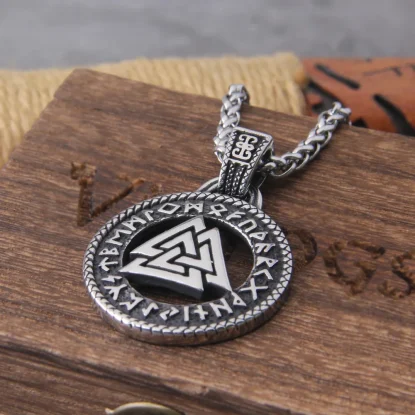 Name:Never Fade The Valknut Viking Runes Necklace Pendant Scandinavian Norse Vikings Charms with wooden box as men gift
