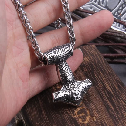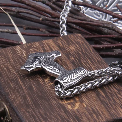 Name:Men Viking Odin Axe Head Thors Hammer Mjolnir Pendant Necklace Norse Jewelry Punk Style Scandinavian Stainless Steel never Fade